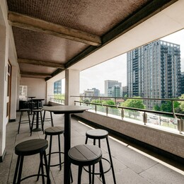 Available as an additional space when you book one of our main halls (The Ashcroft Theatre, Concert Hall and The Rec), the Fairfield Lounge has a balcony running the entire length of the room, for views across Croydon and the recently designed Queen’s Gardens.